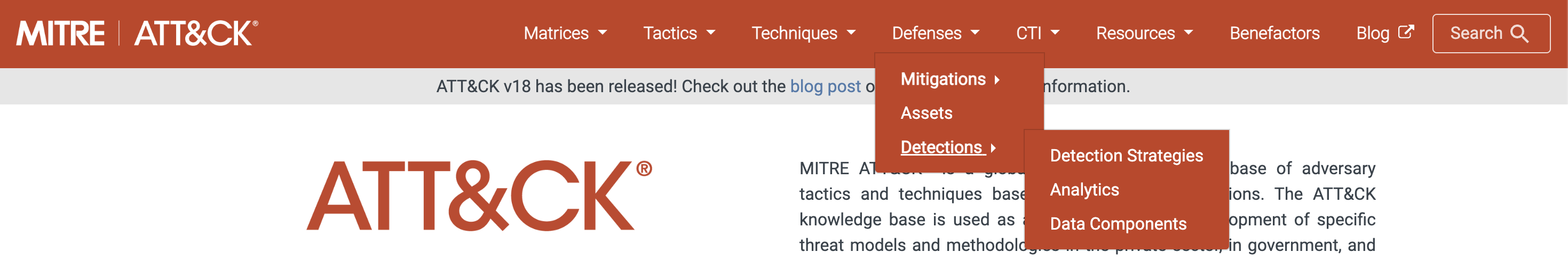 MITRE ATT&CK v18 discards this old model. The "Detections" and "Data Sources" fields are gone. They have been replaced by two new, powerful, and highly structured objects: